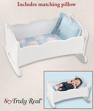 This lovely So Truly Real baby doll accessory is custom-designed to fit all of our collectible 10 inch dolls, and has everything you need to send your little one safely to Dreamland, from its cloud-white finish to its gently curved rockers and classic scalloped edge design.