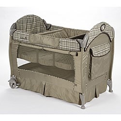 Baby gear features a removable full-size bassinet; Deluxe Playard sets up in under a minute; Comes with a padded changer with a wipeable surface; Padded floor and top rails, rounded edges and bumper pad keeps baby protected.